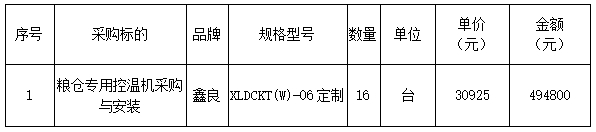 項(xiàng)目名稱:糧倉專用控溫機(jī)采購與安裝項(xiàng)目;