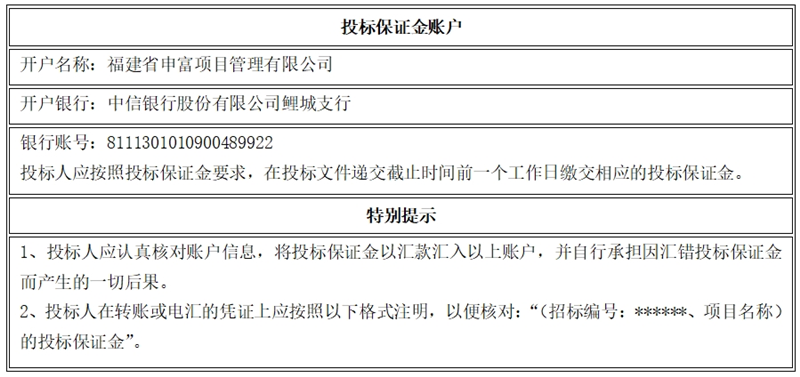 8.2遞交投標(biāo)文件及開標(biāo)地點(diǎn):福建省申富項(xiàng)目管理有限公司(地址:泉州經(jīng)濟(jì)技術(shù)開發(fā)區(qū)德泰路328號(hào)萬興大廈501室)