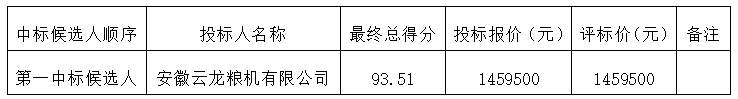 3、被否決投標(biāo)的投標(biāo)人名稱及原因:吳江市勝天包裝輸送機(jī)械有限責(zé)任公司提供投標(biāo)文件的財(cái)務(wù)要求未按招標(biāo)文件的要求提供 2023 年度財(cái)務(wù)審計(jì)報(bào)告,故資格不符合要求。河南安糧工程科技有限公司、中茂瑞通河北糧食機(jī)械制造有限公司、安徽華中機(jī)械配套工程有限公司提供投標(biāo)文件的技術(shù)性能指標(biāo)不符合招標(biāo)文件第二章“投標(biāo)人須知”第 1.3.4 項(xiàng)規(guī)定“提供產(chǎn)品彩頁未提供視為未響應(yīng)招標(biāo)文件,作無效投標(biāo)處理?!?,故河南安糧工程科技有限公司、中茂瑞通河北糧食機(jī)械制造有限公司、安徽華中機(jī)械配套工程有限公司符合性審查情況不符合要求。