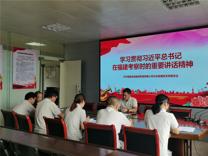 10月22日上午,永安直屬庫(kù)黨支部組織召開學(xué)習(xí)貫徹習(xí)近平總書記在福建考察時(shí)的重要講話精神專題會(huì)議,傳達(dá)學(xué)習(xí)習(xí)近平總書記10月15日至16日在福建考察時(shí)的重要講話精神及省委、全省領(lǐng)導(dǎo)干部大會(huì)、省政府黨組、省發(fā)改委黨組、省糧儲(chǔ)局黨組及公司黨委會(huì)議精神。