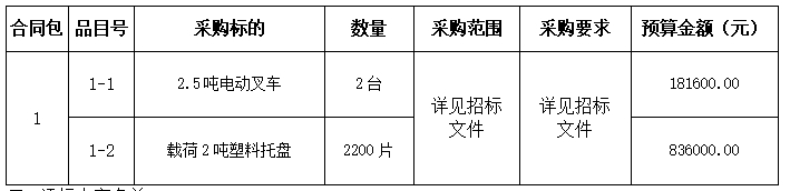二、項目名稱:電動叉車及塑料托盤采購項目