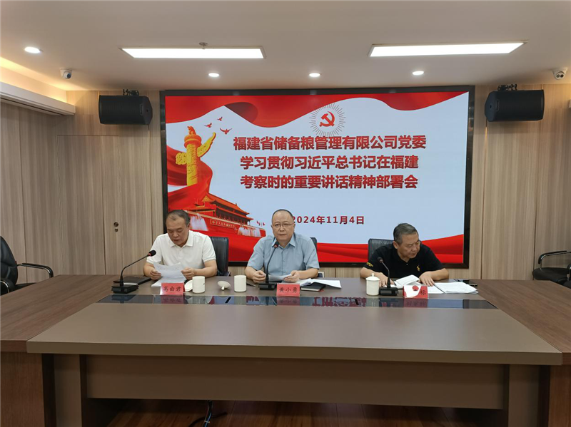 11月4日,省儲(chǔ)備糧管理公司組織召開公司系統(tǒng)學(xué)習(xí)貫徹習(xí)近平總書記在福建考察時(shí)的重要講話精神部署會(huì),深入學(xué)習(xí)貫徹習(xí)近平總書記在福建考察時(shí)的重要講話精神,按照省委、省政府、省發(fā)改委及省糧儲(chǔ)局黨組部署要求有條不紊推進(jìn)學(xué)習(xí)宣傳貫徹各項(xiàng)工作,扎實(shí)有力推動(dòng)習(xí)近平總書記重要講話精神在公司系統(tǒng)落地生根、見行見效。公司黨委書記、董事長(zhǎng)黃小勇出席會(huì)議并作部署。