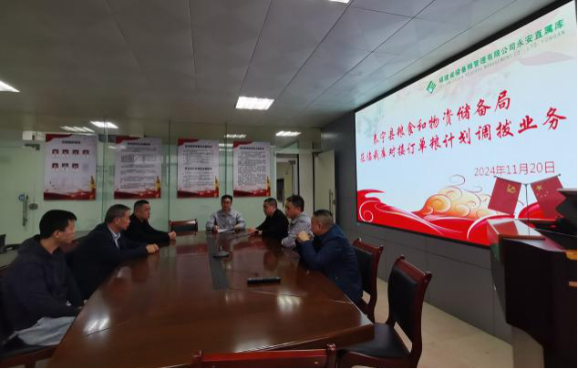 為全面做好2024年度省級儲備訂單糧收調(diào)工作,協(xié)調(diào)好調(diào)撥和接收庫點,確保訂單糧入庫數(shù)量準(zhǔn)確、質(zhì)量良好,11月20日,泰寧縣糧儲局一行到我?guī)炀?900噸省級儲備訂單糧計劃調(diào)撥工作進行了業(yè)務(wù)對接。雙方一致認為,做好省級儲備訂單糧收調(diào)工作,一要提高政治站位。要增強糧食收購工作的思想自覺、政治自覺、行動自覺,以高度的責(zé)任感和強烈的使命感,全力做好訂單糧收購工作;提高對訂單任務(wù)的重視,把訂單任務(wù)當(dāng)作全年工作的一項硬指標(biāo),不折不扣完成。二要緊盯糧食入庫各環(huán)節(jié)。要做好訂單糧接收入庫準(zhǔn)備,要把好訂單糧數(shù)量關(guān)、質(zhì)量關(guān),嚴把質(zhì)量不放松,守住糧食質(zhì)量底線,把好糧食宜存指標(biāo),符合收購質(zhì)量標(biāo)準(zhǔn)的方可收購入庫;泰寧縣糧食購銷有限公司要聯(lián)系好訂單糧運輸、裝卸等環(huán)節(jié),確保秋糧收購有序推進,保質(zhì)保量完成訂單糧入庫工作。