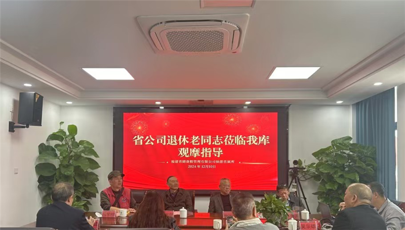 為進(jìn)一步關(guān)心關(guān)愛(ài)退休干部,增強(qiáng)退休老干部的歸屬感、榮譽(yù)感、幸福感,12月10日,林文劍等8位退休老同志在省公司工作人員的陪同下,蒞臨仙游直屬庫(kù)進(jìn)行觀摩指導(dǎo)。仙游直屬庫(kù)主任黃呈兵代表仙游直屬庫(kù)全體職工向退休老同志的蒞臨表示熱烈的歡迎。