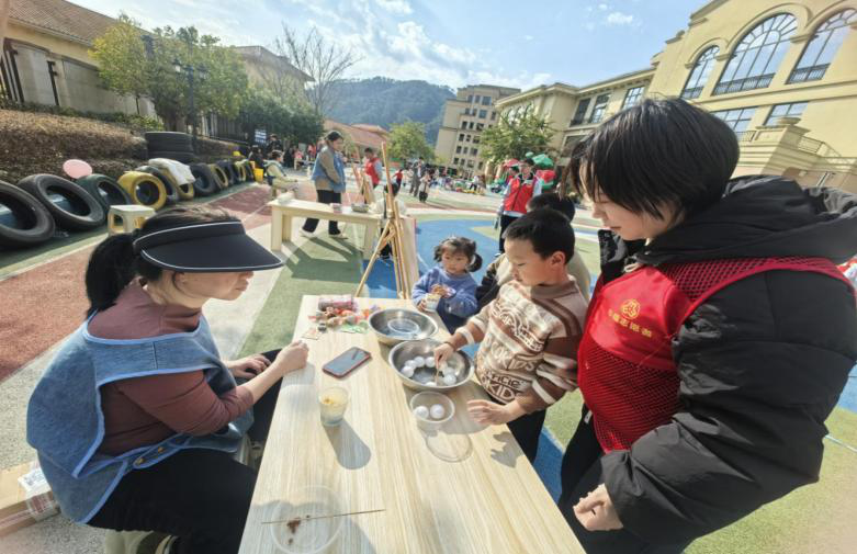 在制作元宵的區(qū)域,糯米粉的香氣彌漫開來。志愿者們手把手教孩子們?nèi)嗝鎴F(tuán)、搓湯圓,小朋友們學(xué)得全神貫注,每一個(gè)湯圓都承載著他們對(duì)傳統(tǒng)美食的好奇與喜愛。大家一邊制作,一邊分享著元宵節(jié)的習(xí)俗和故事,歡聲笑語回蕩在校園的每一個(gè)角落。
