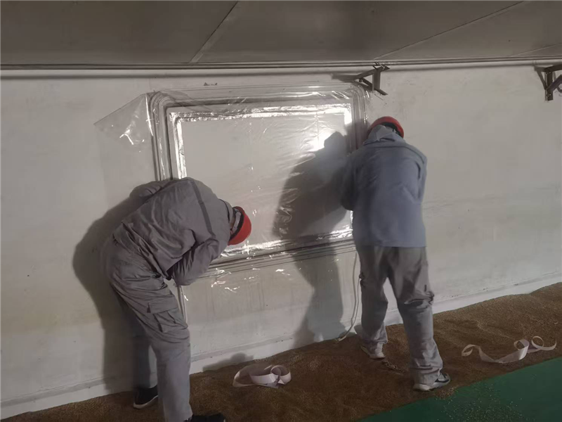 糧食儲存受溫度、濕度等環(huán)境因素影響較大,過高的溫度易引發(fā)糧食霉變、蟲害,導(dǎo)致糧食質(zhì)量下降。因此,本次糧倉密閉保低溫工作,嚴(yán)格按照技術(shù)規(guī)范,重點(diǎn)對糧倉的門窗、通風(fēng)口等部位采用聚乙烯泡沫板隔熱,薄膜壓槽密閉處理,確保糧倉氣密性達(dá)到標(biāo)準(zhǔn)要求,進(jìn)一步增強(qiáng)隔熱效果,有效阻止外界熱空氣進(jìn)入。