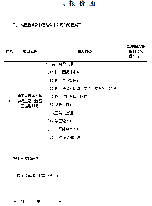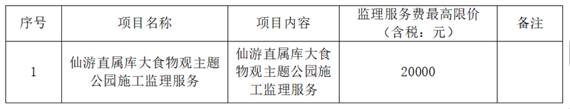 1.項(xiàng)目名稱:仙游直屬庫大食物觀主題公園施工監(jiān)理服務(wù)