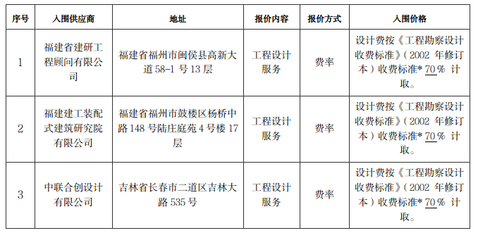 2、入圍供應(yīng)商服務(wù)費轉(zhuǎn)賬完可至福建泉和工程項目管理有限公司領(lǐng)取入圍通知書。