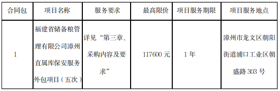 一、項目名稱:福建省儲備糧管理有限公司漳州直屬庫保安服務(wù)外包項目(五次)