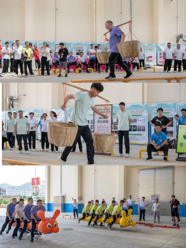 項(xiàng)目“羅雀運(yùn)糧”和“奔跑毛毛蟲”妙趣橫生。在"羅雀運(yùn)糧"項(xiàng)目中,運(yùn)動(dòng)健兒們以專業(yè)儲(chǔ)糧人的精準(zhǔn)與沉穩(wěn),在獨(dú)木橋上穩(wěn)健前行,每一次糧袋的平穩(wěn)交接都是對(duì)"顆粒歸倉"職業(yè)精神的最佳詮釋,展現(xiàn)了糧食人特有的細(xì)致與擔(dān)當(dāng)。泉州地區(qū)代表隊(duì)以快、準(zhǔn)、穩(wěn)的實(shí)力拿下該項(xiàng)目頭籌;在“奔跑毛毛蟲”賽道上,隊(duì)員們手提握柄,弓身前行,30米的賽道化作歡樂的海洋。莆田地區(qū)代表隊(duì)再創(chuàng)佳績,憑借默契配合斬獲冠軍。