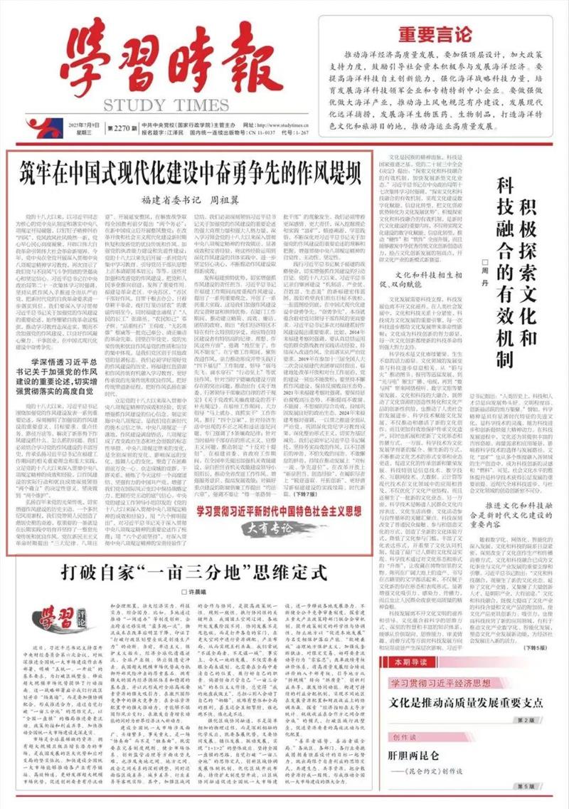 《學(xué)習(xí)時報》2025年7月9日第1版刊發(fā)了福建省委書記、省人大常委會主任周祖翼同志的署名文章《筑牢在中國式現(xiàn)代化建設(shè)中奮勇爭先的作風(fēng)堤壩》,全文如下: