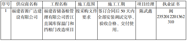 二、項目名稱:福建省儲備糧管理有限公司晉江直屬庫保溫門和擋糧門改造項目
