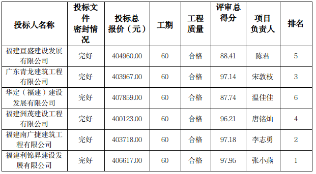 (1)中標(biāo)候選人名稱:福建利錦昇建設(shè)發(fā)展有限公司