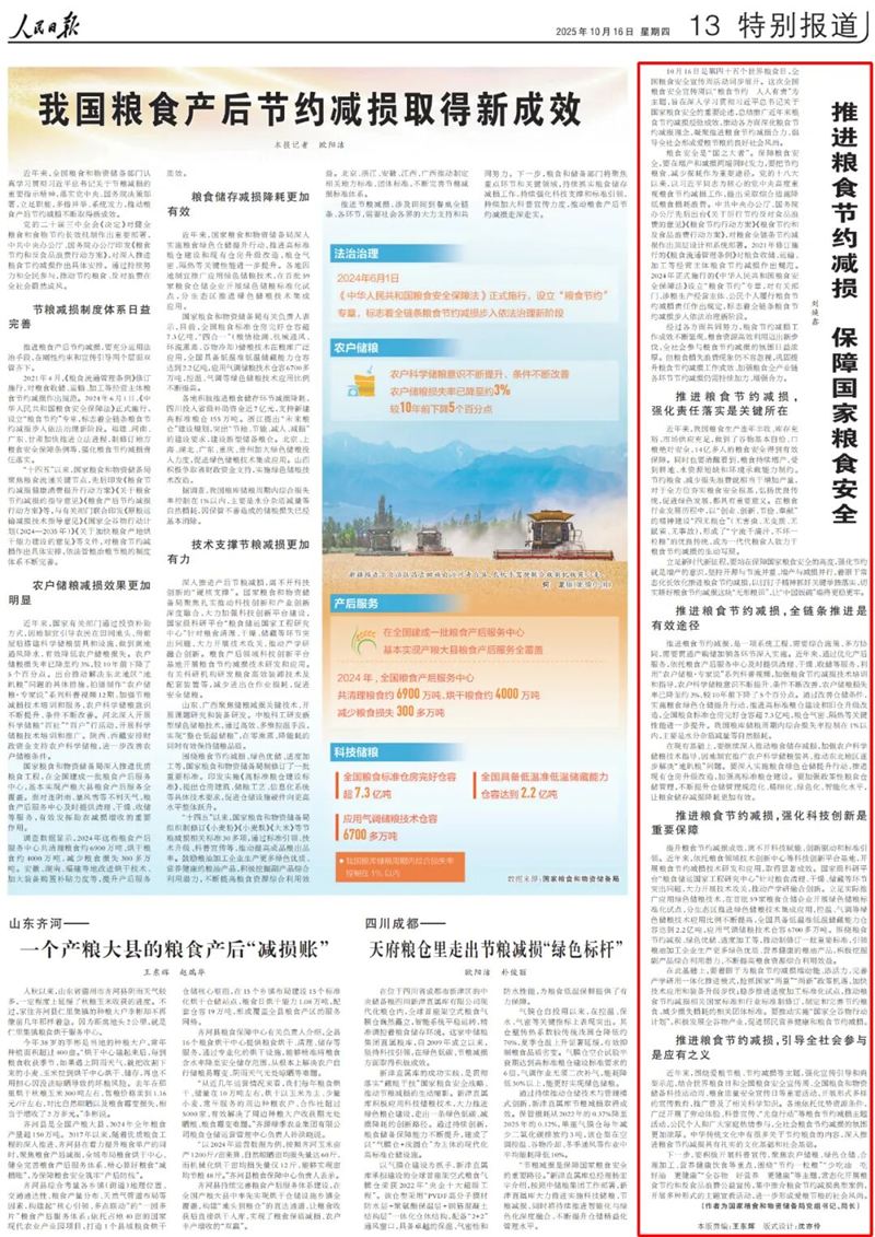 提升糧食節(jié)約減損成效,離不開科技賦能、創(chuàng)新驅(qū)動和標(biāo)準(zhǔn)引領(lǐng)。近年來,依托糧食領(lǐng)域技術(shù)創(chuàng)新中心等科技創(chuàng)新平臺基地,開展糧食節(jié)約減損技術(shù)研發(fā)和應(yīng)用,取得顯著成效。國家級科研平臺“糧食儲運國家工程研究中心”針對糧食清理、干燥、儲藏等環(huán)節(jié)突出問題,大力開展技術(shù)攻關(guān),推動產(chǎn)學(xué)研融合創(chuàng)新。立足實際推廣應(yīng)用綠色儲糧技術(shù),在首批59家糧食倉儲企業(yè)開展綠色儲糧標(biāo)準(zhǔn)化試點,分生態(tài)區(qū)推進綠色儲糧技術(shù)集成應(yīng)用,控溫、氣調(diào)等綠色儲糧技術(shù)應(yīng)用比例不斷提高,全國具備低溫準(zhǔn)低溫儲藏能力倉容達到2.2億噸,應(yīng)用氣調(diào)儲糧技術(shù)倉容6700多萬噸。圍繞糧食節(jié)約減損、綠色優(yōu)儲、適度加工等,推動制修訂一批重要標(biāo)準(zhǔn),引領(lǐng)糧油加工企業(yè)生產(chǎn)更多綠色優(yōu)質(zhì)、營養(yǎng)健康的糧油產(chǎn)品,積極挖掘副產(chǎn)品綜合利用潛力,不斷提高糧食資源綜合利用效益。