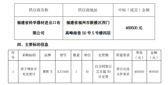 二、項(xiàng)目名稱:福建省儲備糧管理有限公司原子吸收分光光度計(jì)采購項(xiàng)目