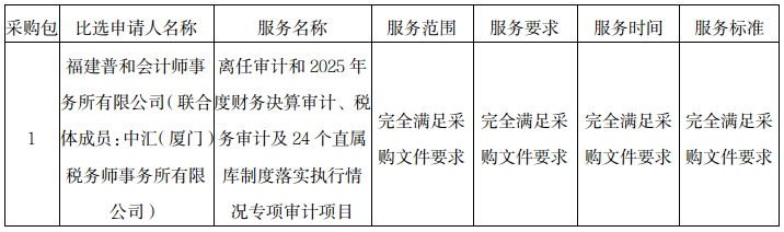 比選申請人名稱:福建普和會計師事務(wù)所有限公司(聯(lián)合體成員:中匯(廈門)稅務(wù)師事務(wù)所有限公司)